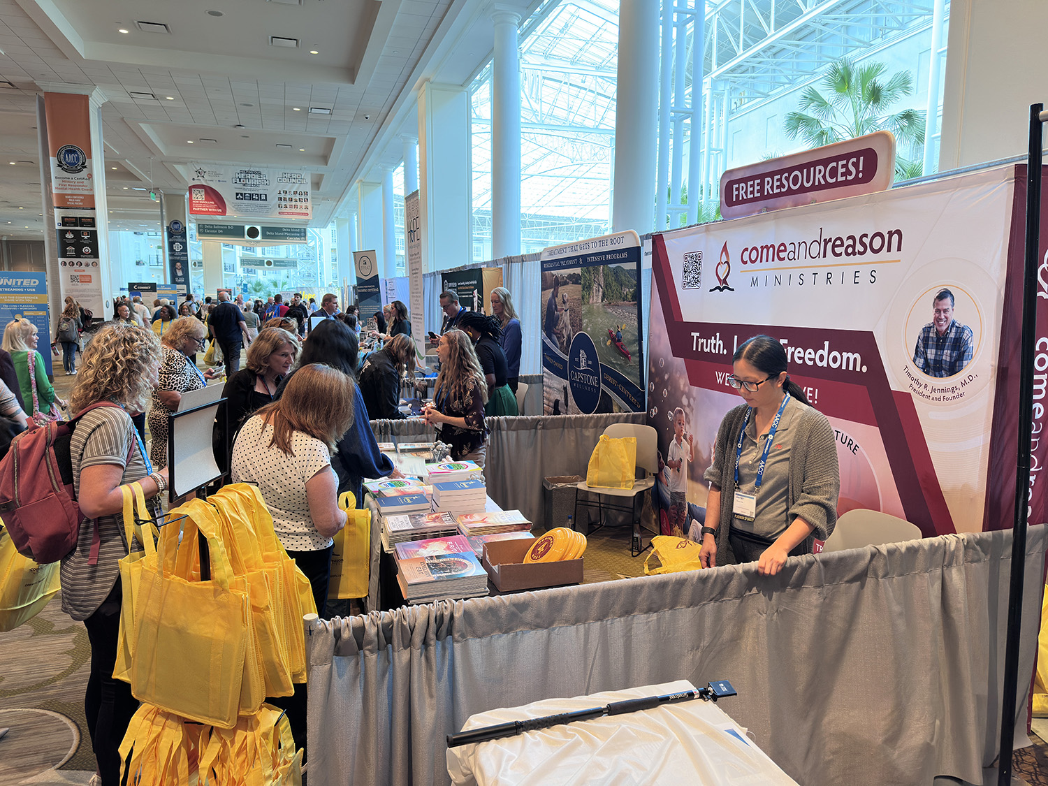 This convention, held every two years, was, again attended by a sold-out crowd of over 7,000 counselors, pastors, psychologists, psychiatrists, social workers, and others in the christian sphere of counseling and help for people in need. Needless to say, our booth, set up right next to Honeylake Clinic, where C&R founder and president, Timothy R. Jennings, M.D. is medical director, was heavily attended as we gave away thousands of free publications, including the new reprint of Journal of the Watcher, The Remedy New Testament Paraphrase, The Remedy Psalms, Could It Be This Simple, God Is Love, and Biblical Concepts Workbook.