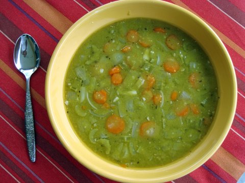 Split Pea Soup is part of the cuisine of many cultures. It is most often prepared with ham hocks, sausage or bacon. This extraordinary vegetarian version contains no added fat, no cholesterol and the flavor is fantastic! It’s easy to make on the stove or in a slow cooker.